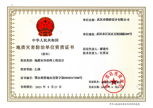 地質(zhì)災(zāi)害治理工程設(shè)計乙級資質(zhì)