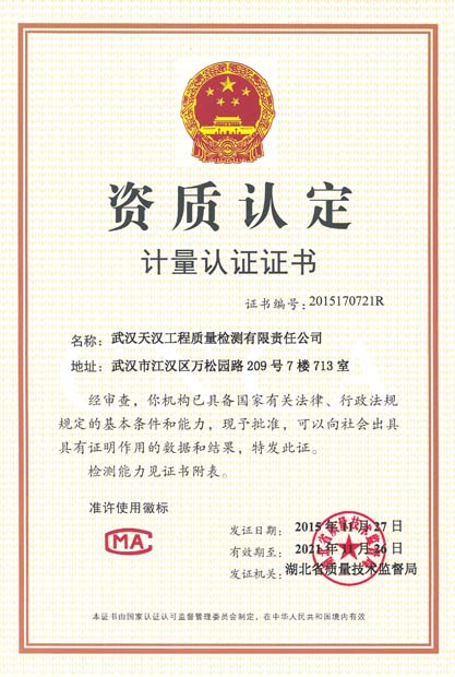 資質(zhì)認定計量認證證書