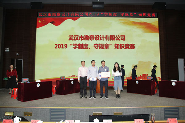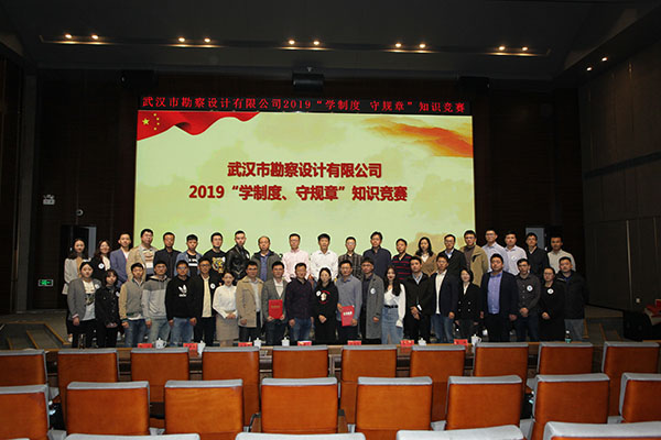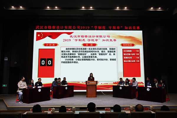 為進一步加強員工對公司企業(yè)文化及各項規(guī)章制度的學習和認識,提高員工的綜合素養(yǎng),10月30日上午,公司首次舉辦的2019年度“學制度 守規(guī)章”知識競賽活動在測繪院307學術(shù)報告廳成功舉辦。公司董事長廖建生,總經(jīng)理施木俊,副總經(jīng)理安永強、官善友、蔣濤,代理副總經(jīng)理熊劍,代理總會計師龔瑋親臨現(xiàn)場指導并觀看了比賽,公司各部門負責人及員工代表共計100余人參加了活動。巖土工程一公司、巖土工程二公司、測繪工程公司、基礎(chǔ)工程公司、檢測監(jiān)測公司、設(shè)計中心、地質(zhì)環(huán)境中心、不動產(chǎn)咨詢中心、東湖分公司、新區(qū)分公司、臨空分公司、土工試驗室等12支生產(chǎn)部門代表隊共36名選手參加了此次比賽。