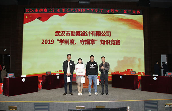 按照競賽規(guī)則,比賽分預賽和決賽兩個階段進行,比賽由個人必答題、小組必答題和搶答題三個環(huán)節(jié)組成,比賽題目內(nèi)容涵蓋了公司企業(yè)文化、《績效目標管理辦法》、《差旅費管理辦法》、《合同管理辦法》、《員工崗位歸級管理暫行辦法》、《安全生產(chǎn)與文明施工管理規(guī)定》等公司核心管理制度的內(nèi)容。預賽階段,12支參賽隊伍以飽滿的熱情、昂揚的斗志、團結(jié)的作風、拼搏的精神,為大家獻上了一場緊張激烈、精彩紛呈的知識競賽,各隊比分也一度不相上下,經(jīng)過近一個小時的緊張角逐,巖土工程二公司、臨空分公司、設(shè)計中心3支代表隊分別以小組第一名的成績進入決賽。預賽結(jié)束后的間隙休息時段,同時設(shè)置了觀眾互動答題環(huán)節(jié),讓現(xiàn)場觀眾共同參與答題,賽場氣氛熱烈。決賽環(huán)節(jié)更是高潮迭起、扣人心弦,3支代表隊的選手配合默契、沉著冷靜、對答如流,在小組必答題環(huán)節(jié)也是穩(wěn)打穩(wěn)扎,不急不躁,各隊的比分差距較小。最終經(jīng)過兩輪比拼,設(shè)計中心代表隊以240分的高分榮獲團體一等獎,臨空分公司代表隊榮獲團體二等獎,巖土工程二公司代表隊榮獲團體三等獎。公司董事長廖建生、總經(jīng)理施木俊、副總經(jīng)理安永強分別為獲獎選手頒發(fā)了榮譽證書和獎品。