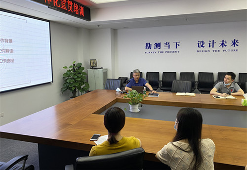 培訓(xùn)現(xiàn)場(chǎng),市測(cè)繪研究院王主任結(jié)合“放管服”改革、“優(yōu)化營(yíng)商環(huán)境”改革、“四辦”改革、“審批服務(wù)大集中”改革四個(gè)方面對(duì)“權(quán)籍調(diào)查及測(cè)繪一體化”知識(shí)進(jìn)行了系統(tǒng)全面的講解,進(jìn)一步鞏固了全體員工的專(zhuān)業(yè)理論知識(shí),同時(shí)也讓大家對(duì)相關(guān)業(yè)務(wù)的辦理流程有了更加清晰的認(rèn)識(shí)。