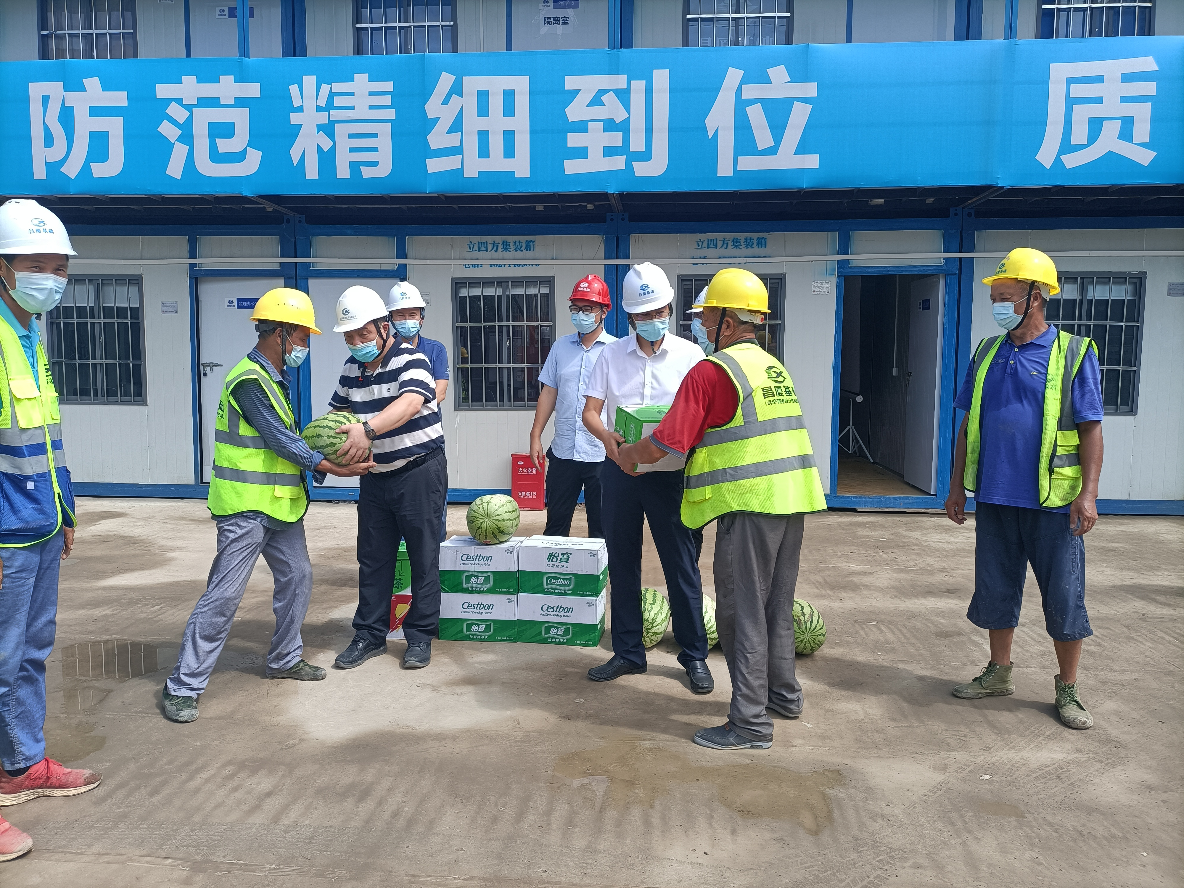 同時(shí),公司領(lǐng)導(dǎo)在項(xiàng)目現(xiàn)場開展了送清涼活動(dòng),為一線人員送上礦泉水、西瓜、花露水、藿香正氣水等防暑降溫物資及個(gè)人防護(hù)用品,并叮囑在高溫堅(jiān)守崗位的一線職工要注意勞逸結(jié)合,做好疫情個(gè)人防護(hù),消除各類安全隱患,確保夏季安全生產(chǎn)。(綜合部(黨群工作部)