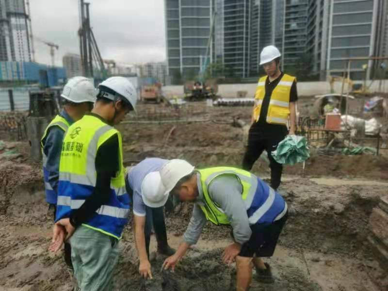 面對(duì)該項(xiàng)目地層區(qū)域差異性大,協(xié)調(diào)溝通任務(wù)重,施工條件艱苦,疫情防控形勢(shì)嚴(yán)峻等不利因素,昌廈公司周密部署,迎難而上,集合施工人才,組建高效協(xié)作施工團(tuán)隊(duì),保障項(xiàng)目順利推進(jìn)。在項(xiàng)目實(shí)施過程中,樁基礎(chǔ)工程采用泥漿護(hù)壁鉆孔灌注樁樁端樁側(cè)復(fù)合后注漿及預(yù)應(yīng)力管樁的施工工藝;基坑支護(hù)工程的結(jié)構(gòu)采取“樁-撐”的形式;止水帷幕及土體加固采用三軸攪拌樁支護(hù)形式。項(xiàng)目團(tuán)隊(duì)努力克服8月份疫情嚴(yán)峻形勢(shì)及高溫天氣的影響,落實(shí)疫情防控措施和安全生產(chǎn)管理工作,定期組織技術(shù)交流與培訓(xùn),積極與各方單位協(xié)調(diào),高效安全進(jìn)行多線作業(yè),確保高質(zhì)量完成工期任務(wù)。