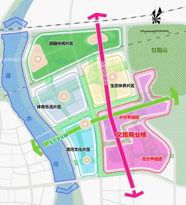 項(xiàng)目規(guī)劃用地約1.1萬(wàn)畝,打造“一核兩軸四片區(qū)”的空間格局:項(xiàng)目“一核”圍繞湖面,布局多元文旅業(yè)態(tài),其中包括約9萬(wàn)方的全球最大冰雪娛樂(lè)綜合體,約2萬(wàn)方的水娛樂(lè)綜合體,約30萬(wàn)方的酒店康養(yǎng)民宿群以及集萃黃陂人文的特色水鎮(zhèn)商街;“兩軸”將建設(shè)文旅發(fā)展軸和生態(tài)文化軸;“四片區(qū)”即以水系為主線,形成濱河文化、體育樂(lè)活、田園休閑、生態(tài)休養(yǎng)四大片區(qū),為游客提供全天候、全季節(jié)、全齡段、全業(yè)態(tài)的文化旅游服務(wù)。