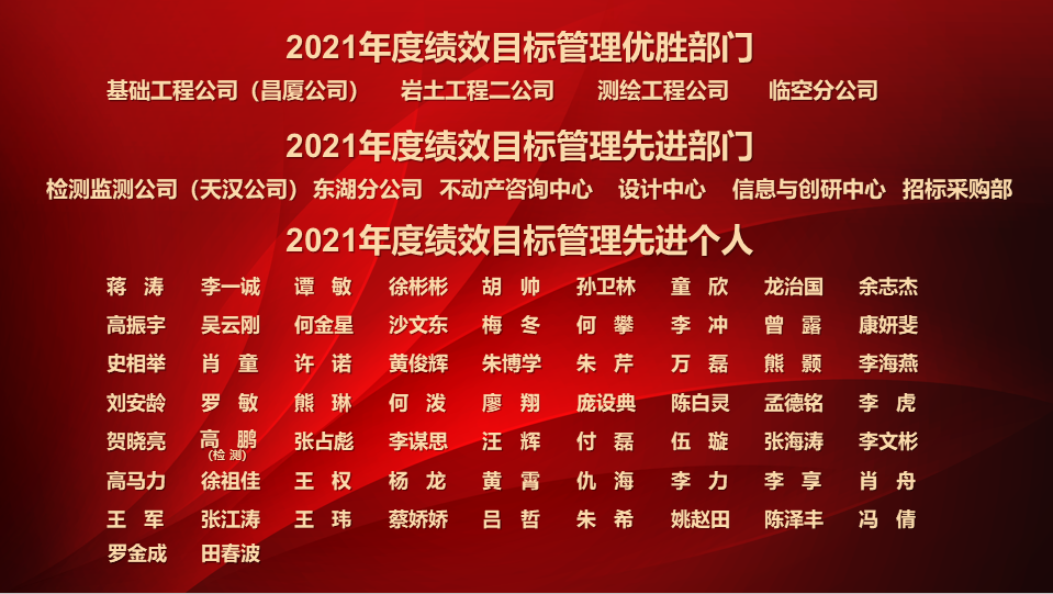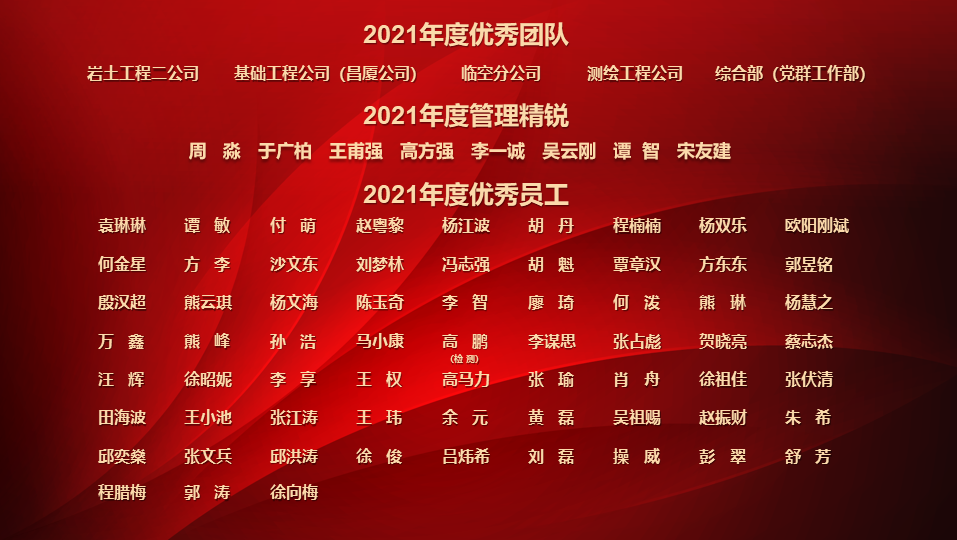 為表彰先進、樹立榜樣,進一步激發(fā)干部員工勇當先鋒、勇爭佳績,公司領(lǐng)導(dǎo)在會上宣讀了年度各類表彰。