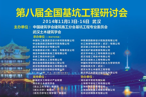 2014年11月14日,第八屆全國基坑工程研討會在武漢市洪山賓館隆重召開。此研討會每兩年舉辦一次,是國內(nèi)基坑工程技術(shù)專業(yè)的頂級交流活動。本次大會共有來自全國各地的行業(yè)精英700余人參加,并邀請到龔曉南、劉祖德、范士凱、顧金才、黃強、唐雨耕、宋二祥、鄭剛、王衛(wèi)東、徐武建、彭浩、張曠成等工程院院士、全國頂尖大師、知名學者及重要領(lǐng)導(dǎo)作為與會嘉賓,大家齊聚一堂,共襄盛會。