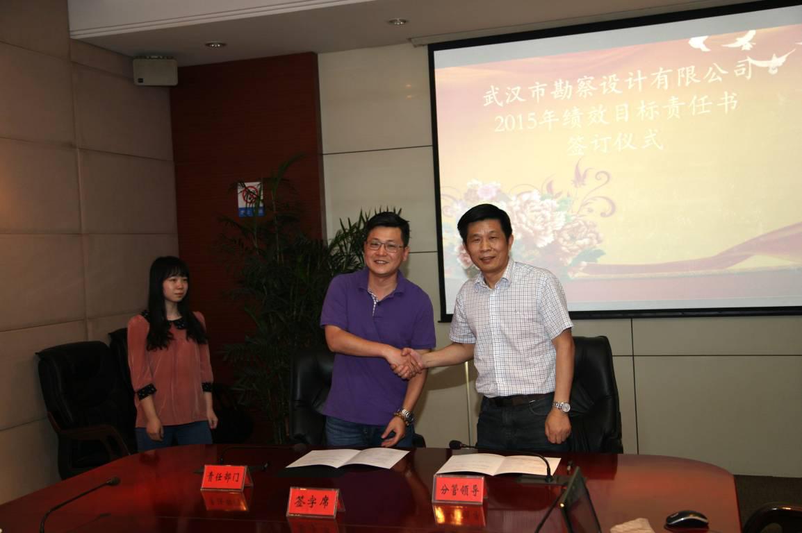 2015年5月14日,公司績(jī)效目標(biāo)領(lǐng)導(dǎo)小組組織召開了隆重的“勘察公司2015年績(jī)效目標(biāo)責(zé)任書簽訂儀式”。公司高層管理人員分別與各分管部門負(fù)責(zé)人簽訂了部門績(jī)效目標(biāo)責(zé)任書,為勘察公司年度績(jī)效目標(biāo)的完成攜手努力,共同推動(dòng)公司各項(xiàng)生產(chǎn)及管理工作高效有序開展,為客戶提供優(yōu)質(zhì)可靠的服務(wù),提升公司品牌影響力和行業(yè)地位。通過(guò)年度績(jī)效目標(biāo)任務(wù)的落實(shí),逐步實(shí)現(xiàn)勘察公司中長(zhǎng)期發(fā)展戰(zhàn)略目標(biāo)。