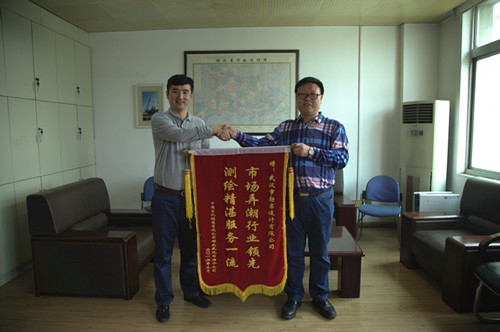 2016年4月12日上午,中國石化銷售有限公司湖北石油分公司將一面“市場弄潮行業(yè)領(lǐng)先,測繪精湛服務(wù)一流”的錦旗送到武漢市勘察設(shè)計有限公司,以感謝在加油站綠化驗收測量及工程勘察項目中為其提供了優(yōu)質(zhì)、高效的服務(wù),同時就相關(guān)業(yè)務(wù)問題進(jìn)行了交流探討,為下一步開展合作奠定了良好的基礎(chǔ)。(綜合部、測繪工程公司聯(lián)合供稿)