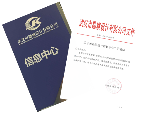2017年1月1日,武漢市勘察設計有限公司正式下文成立信息中心,主要負責公司科研開發(fā)、信息化建設、軟件系統(tǒng)及資源平臺維護等工作。